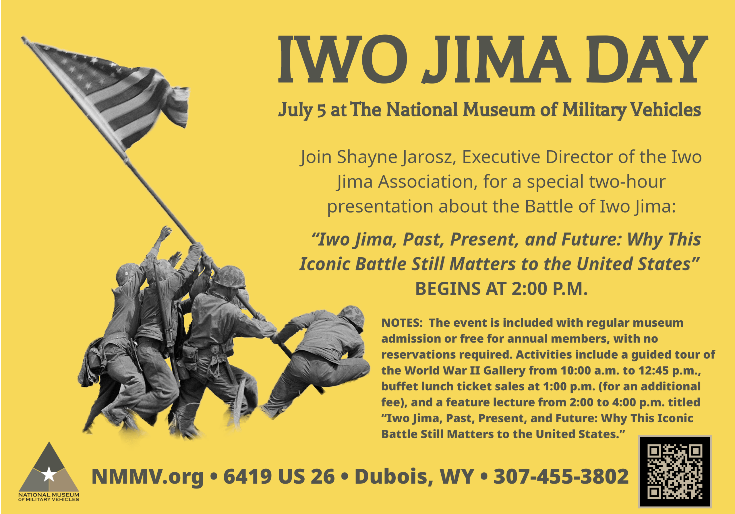 The National Museum of Military Vehicles will host Shayne Jarosz, Executive Director of the Iwo Jima Association, for a special two-hour presentation about the Battle of Iwo Jima. His presentation, “Iwo Jima, Past, Present, and Future: Why This Iconic Battle Still Matters to the United States,” will explore the significance of the Battle of Iwo Jima, the island’s place in modern history, its return to Japanese control, and developments there today.