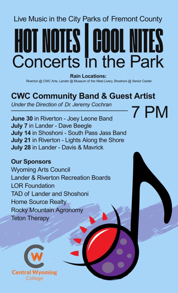 Every Saturday from 10 a.m. to 12 p.m at the Lander Art Center. All instruments, ages and skill sets welcome!